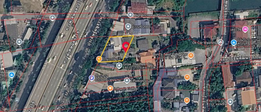 ให้เช่าที่ดินพร้อมสิ่งปลูกสร้าง ริมถนนประดิษฐ์มนูญธรรม ขนาด 200 ตารางวา แขวงคลองจั่น เขตบางกะปิ กทม.