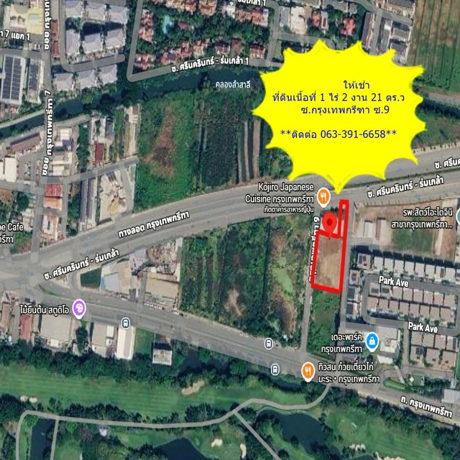 ให้เช่าที่ดินเนื้อที่ 1 ไร่ 2 งาน 21 ตารางวา กรุงเทพกรีฑา ซอย 9 ติดถนน เข้าออกได้ 2 ทาง ติดถนนศรีนครินทร์ และซ.กรุงเทพกรีฑา **สอบถามรายะลเอียด 063-391-6658**
