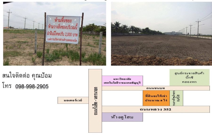ที่ดินติดถนนใหญ่ มีถนน 3 ด้าน คลอง7 ขนาด 6 ไร่ ถูกที่สุดในประเทศไทย ที่ดินถมแล้วให้เช่า หน้ากว้าง 40 เมตร .ติดถนน 4 เลน