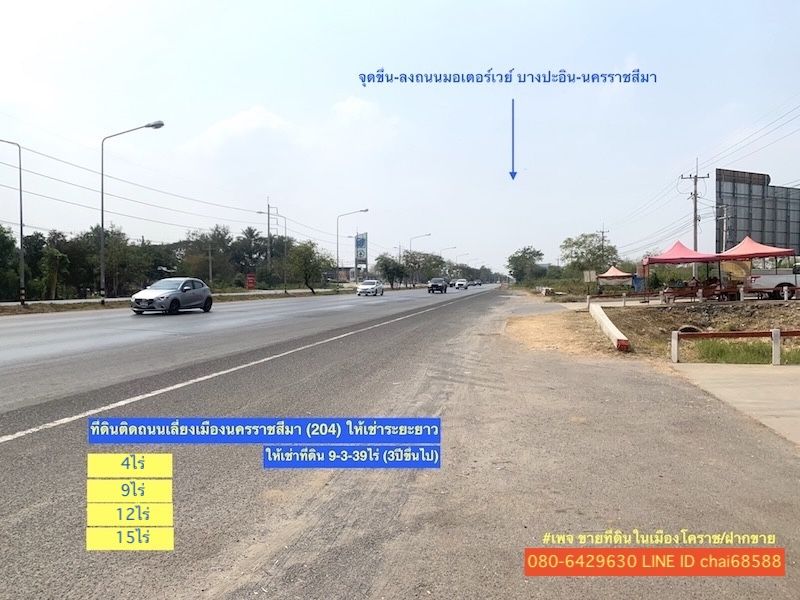 ที่ดินติดถนนเลี่ยงเมือง(204)เนื้อที่ 9ไร่,4ไร่,12ไร่,15ไร่ ให้เช่าระยะยาวที่ดินใกล้ห้างไทวัสดุใกล้ศาลปกครองนครราชสีมา ค่าเช่า 100,000/เดือน กรณีเช่าระยะยาวมีค่าหน้าดิน สอบถามเพิ่ม สนใจที่ดินในเมืองโคราชหรือฝากขายที่ดิน ติดต่อเฮียชัย 080-6429630 LINE ID chai68588 เพจ ขายที่ดินในเมืองโคราช/ฝากขาย