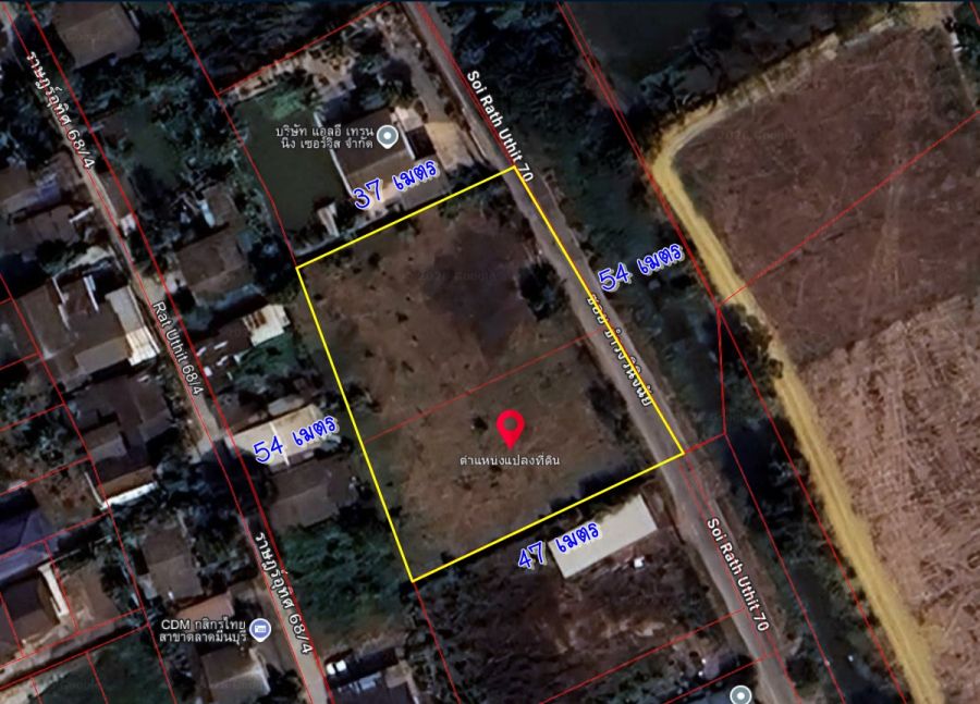 ให้เช่า ที่ดินเปล่า ถมแล้ว เนื้อที่ 1-1-84 ไร่ หน้ากว้างประมาณ 54 เมตร ลึกประมาณ 37 เมตร หันหน้าทิศตะวันออกเฉียงเหนือ โซนสีเขียวทแยง