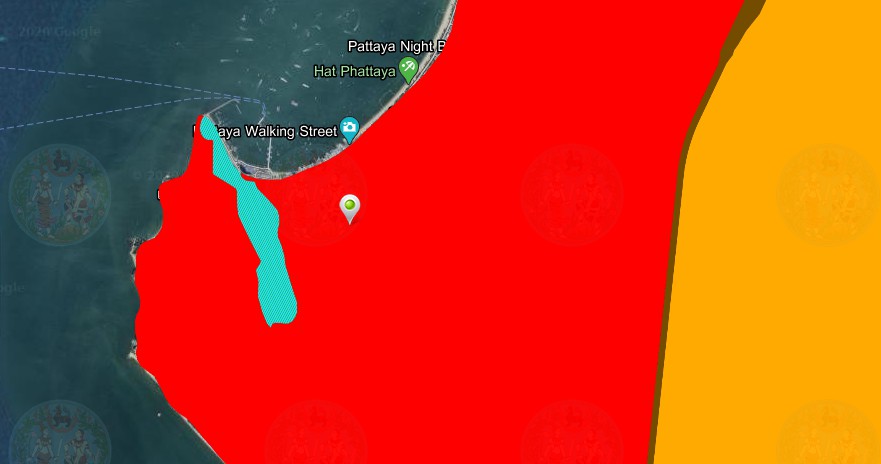 Land for sale in Pattaya, land size 1 rai, next to 3rd road, in front of Pattaya 3rd road Before taking the elevated bridge to the Bali Hai Pier The side and back of the road. In the red zone Build a 30 story condo In the beautiful community area