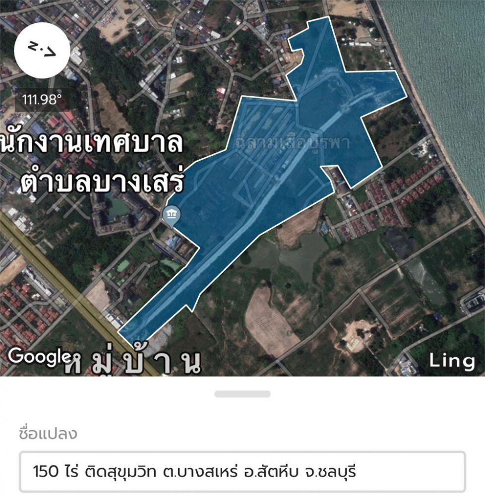 ตำแหน่งที่ดินแปลง 150 ไร่ ติดหาดบางเสร่