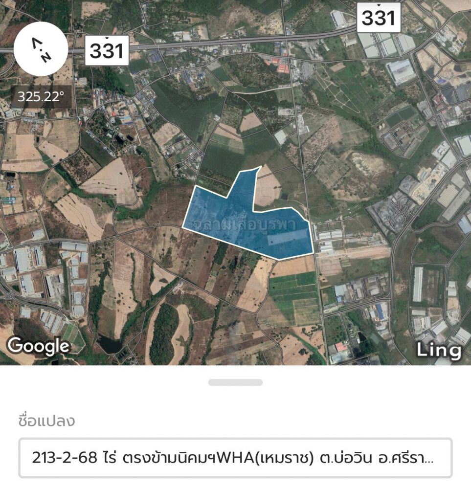 ขายที่ดินบ่อวิน อยู่ตรงข้ามเจริญสินธานีเมืองใหม่ และเยื้องกับนิคมฯเหมราช(WHA1) เนื้อที่ 213-2-68 ไร่ ต.บ่อวิน อ.ศรีราชา จ.ชลบุรี หน้ากว้างติดถนนซอยวัดบ่อวิน-ยางเอน ยาว237เมตร เป็นที่ราบสลับเนินเล็กๆวิวสวย ด้านข้างติดคลองมะนาว เป็นคลองกว้าง ที่ดินแปลงนี้สวยมาก(สามารถขยายเพิ่มได้อีก)