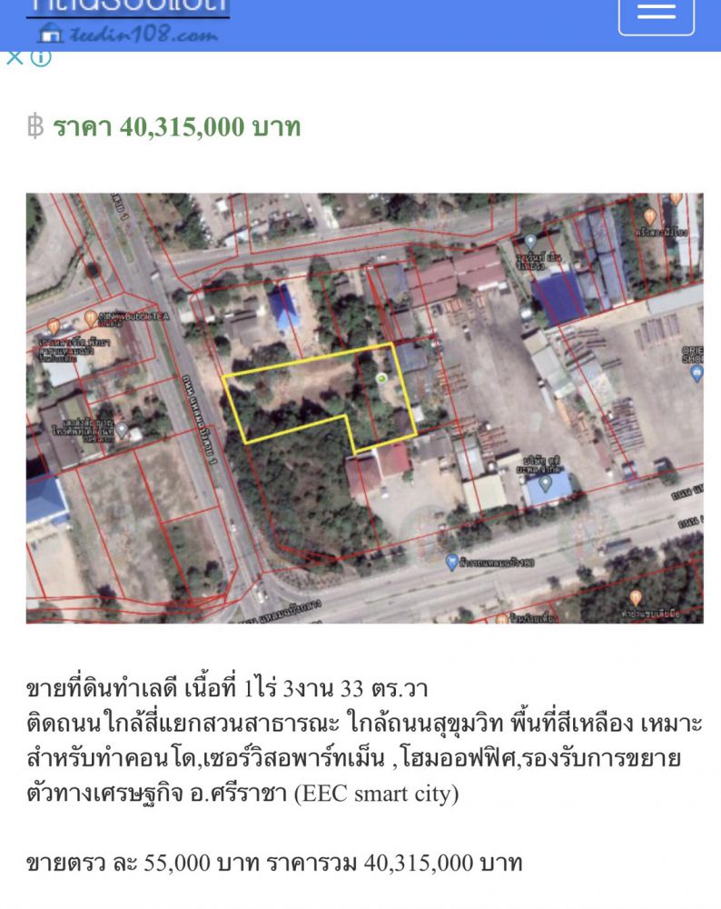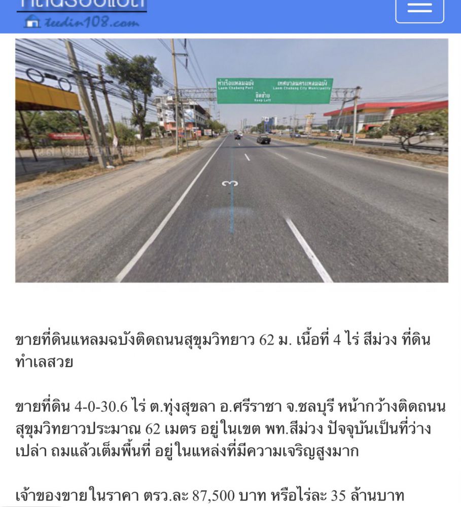 ขายที่ดินติดถนนสุขุมวิท แหลมฉบัง ชลบุรี 1-1-04 ไร่ ขายด่วนๆ ราคาถูก