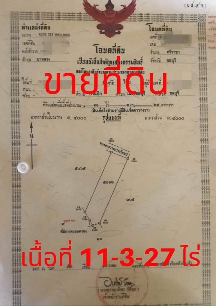 ด่วน ขายที่ดินศรีราชา ทำเลดี อยู่ติดถนนหลักสุขุมวิท