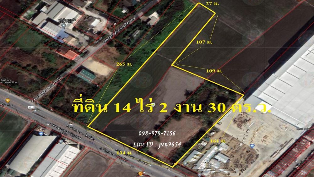 หน้ากว้างติดคอนกรีต 134 เมตร ยาว 256 เมตร เป็นพื้นที่สีส้มสามารถทำโรงงานได้