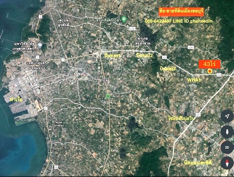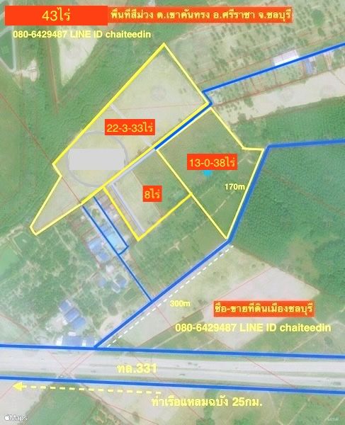 ขายที่ดิน 43-3-71ไร่ (พื้นที่สีม่วง)ที่ดินหน้ากว้าง 170เมตร ด้านหลังติดลำห้วยสาธารณประโยชน์ ที่ดินเหมาะพัฒนาอุตสาหกรรม ที่ตั้งตำบลเขาคันทรง อำเภอศรีราชา จังหวัดชลบุรี ที่ดินห่างจากถนน ทล.331 ประมาณ 300เมตร ห่างจากท่าเรือแหลมฉบัง 25กม.เปิดราคาขายไร่ละ 4.2 ล้าน ขายยกแปลง 184 ล้าน สนใจคุยรายละเอียดที่ดิน ติดต่อคุณชัย เพจ ซื้อ-ขายที่ดินเมืองชลบุรี 080-6429487 LINE ID chaiteedin