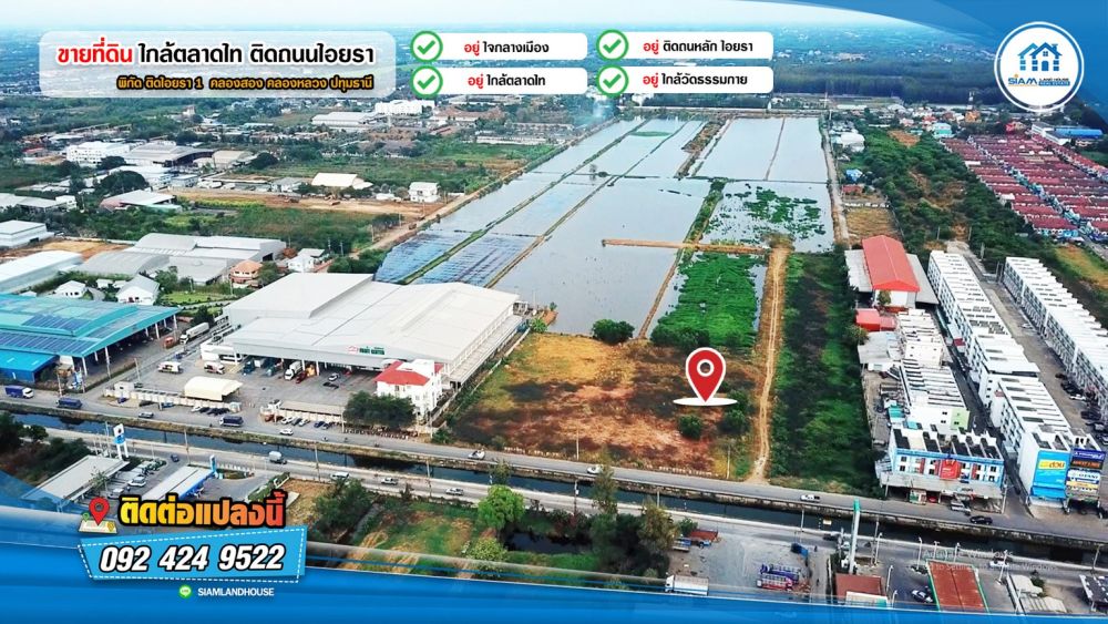 ขายที่ดิน 69-3-45 ไร่ ขยายได้ถึง 100 ไร่ ใกล้ตลาดไท ติดถนน ไอยรา และที่ดินสามารถเข้าทางซอยไอยรา 4/1 ได้ คลองหลวง ปทุมธานี