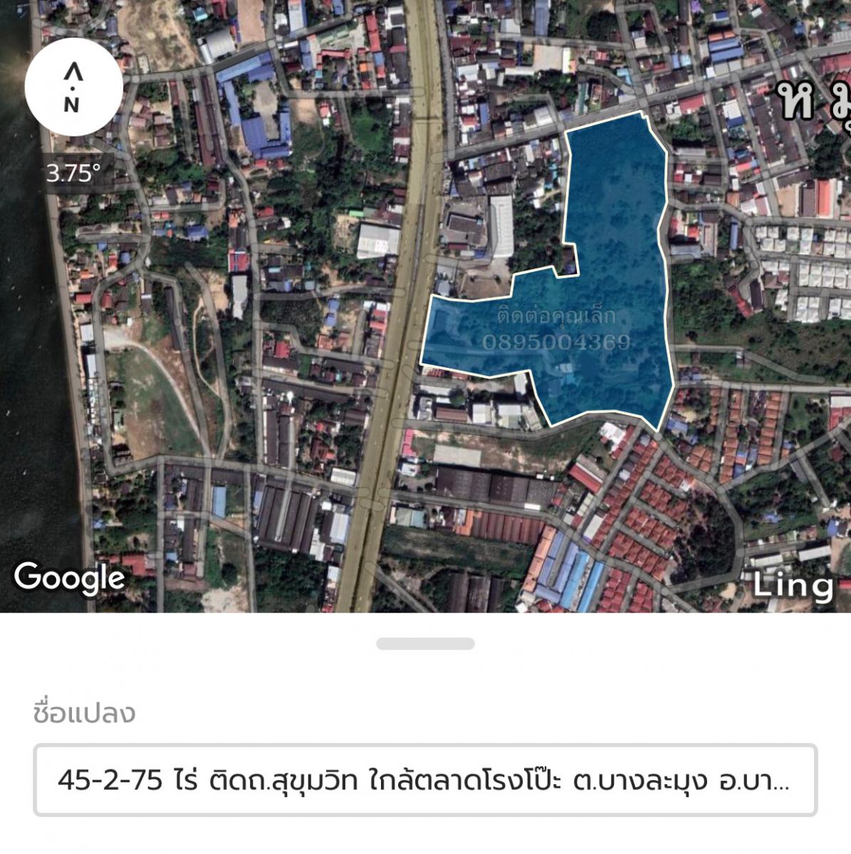 ขายที่ดินติดถนนสุขุมวิท ใกล้ตลาดโรงโป๊ะ ถนนรอบด้าน อยู่ในแหล่งความเจริญสูง บางละมุง ชลบุรี 45-2-75 ไร่