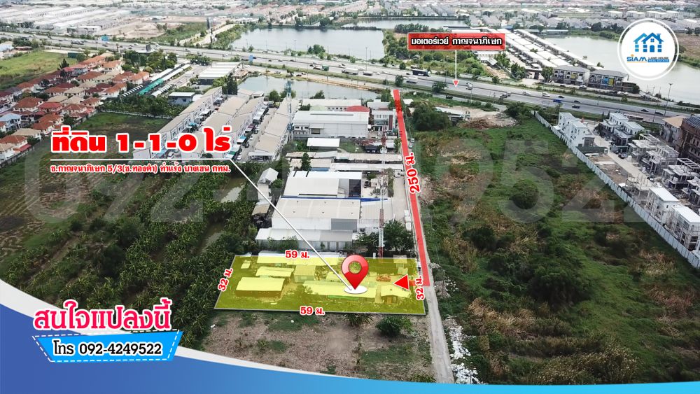 ที่ดินเลียบมอเตอร์เวย์ กาญจนาภิเษก 5/3 รูปสี่เหลี่ยมจตุรัสสวยๆ ขนาก 1-1-0 ไร่ ที่ดินถมแล้วพร้อมทำประโยชน์ ผังที่ดินสีเหลือง(ที่อยู่อาศัยหน้าแน่นน้อย)