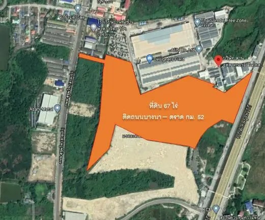 ขายที่ดินทำเลดีที่สุดด่วน 67ไร่ ติดถนนบางนาตราด กม. 52