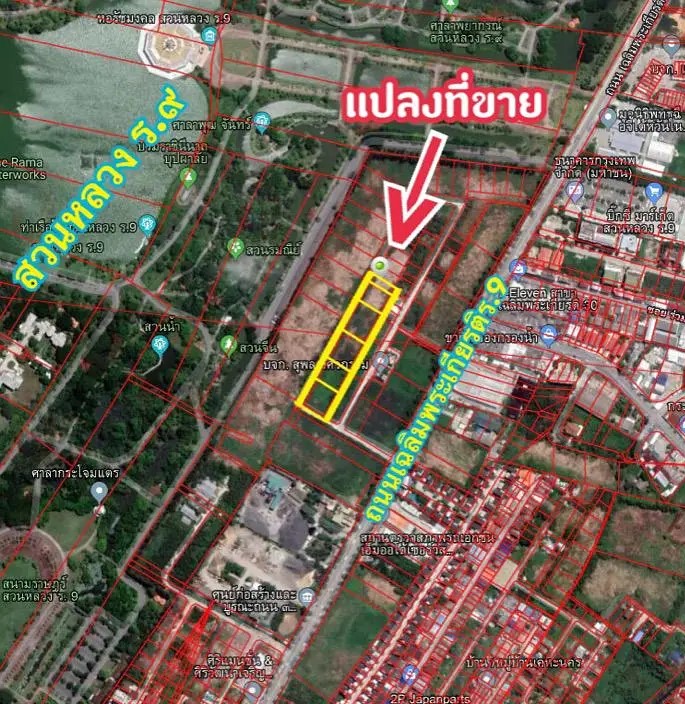 PB15L15ขายที่ดินเปล่าติดสวนหลวงร. 9 ติดถนนเฉลิมพระเกียรติร. ๙
