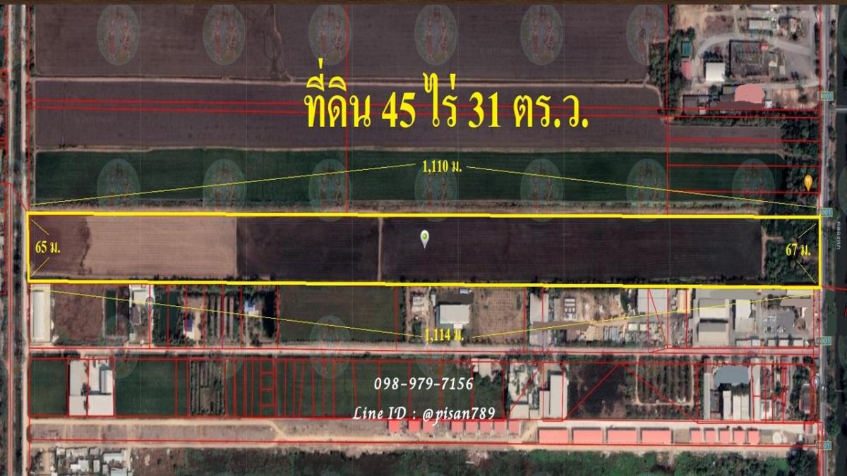 P299 ขายที่ดินเปล่า 45 ไร่ 31 ตารางวา คลอง 6 (ฝั่งตะวันตก) ติดถนนเลียบคลองทั้งด้านหน้าและด้านหลัง ผังสีชมพู ใกล้สน. ปตท. บจ.ศิริ สมบูรณ์ เอ็นจีวี