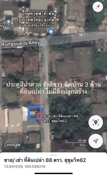 ขาย / ให้เช่า ที่ดินเปล่า 88 ตารางวา (ใกล้ด่านทางด่วน สุขุมวิท 62 และใกล้ BTS บางจาก)