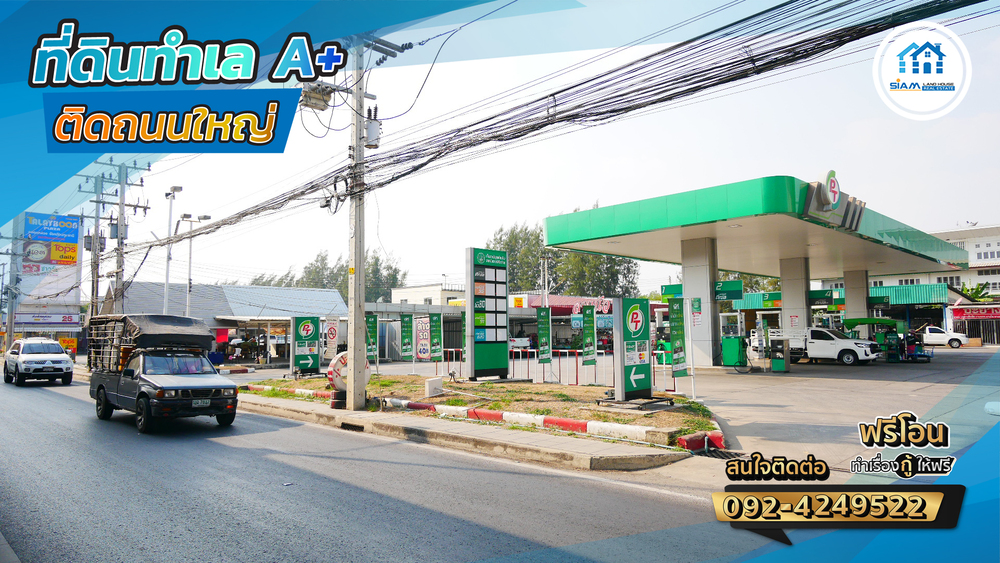 ที่ดิน 2-2-85 ไร่ ติดถนนคลองหลวง พร้อมผู้เช่า ปั้ม PT ติดกับทางเข้าวัดพระธรรมกาย คลองหลวง ปทุมธานี