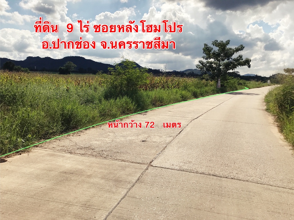 ขายที่ดิน 9 ไร่ ซอยหลังโฮมโปรปากช่อง อ.ปากช่อง จ.นครราชสีมา ใกล้ถนนมิตรภาพและถนนธนะรัชต์ กม.1 ถนนหน้าที่ดินเป็นคอนกรีตสองแลน ที่ดินหน้ากว้าง 72 เมตร ลึก 152 เมตร เหมาะสำหรับสร้างโครงการบ้านจัดสรร สร้างแหล่งท่องเที่ยว สำนักงาน โกดังสินค้า สนใจติดต่อ คุณเงิน 📞080-289-4141 หรือ 📞062-464-1542