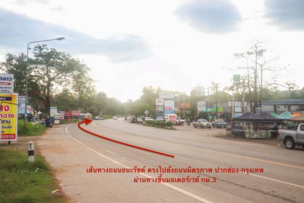 - ห่างจากไฟแดงแยกถนนธนะรัชต์ เลี้ยวเข้าถนนกุดคล้า-ผ่านศึก (เส้นทางลัดเขาใหญ่-หมวกเหล็ก) เพียง 100 เมตร
