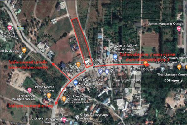 ที่ดินสวยติดถนนธนะรัชต์ เขาใหญ่ กม.20 ตรงข้ามตลาดนัดกุดคล้า