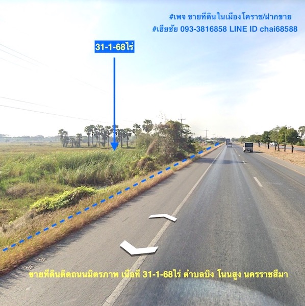ขายที่ดินติดถนนมิตรภาพ เนื้อที่ 31.5ไร่ หน้ากว้าง 400เมตร ตำบลบิง อำเภอโนนสูง นครราชสีมา ที่ดินฝั่งขาเข้าโคราช เหมาะพัฒนาเป็นห้างร้านสำนักงาน หรือโกดัง- โรงงาน ขายยกแปลง 50.4 ล้าน สนใจที่ดินคุยรายละเอียด ติดต่อเฮียชัย 📞080-6429630 LINE ID chai68588 #เพจ ขายที่ดินในเมืองโคราช/ฝากขาย 🌐https://web.facebook.com/chai68588