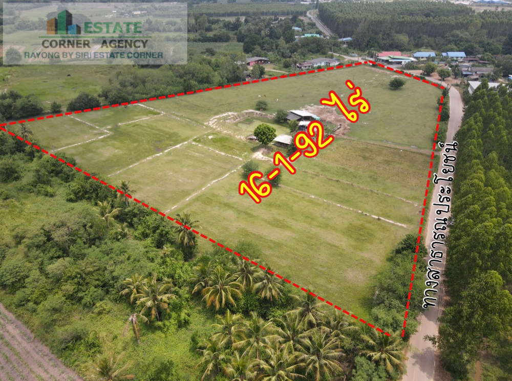 - ที่ดินเปล่าเนื้อที่ 16-1-92 ไร่ (2 โฉนด) แปลงที่ดินติดถนนคอนกรีต ทั้ง 3 ด้าน
