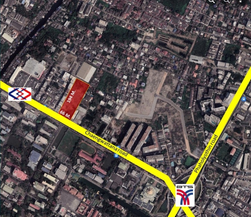 ขายที่ดินเปล่า ถนนแจ้งวัฒนะ (สถานี ราชภัฎพระนคร) เนื้อที่ 7-2-21 ไร่ กว้าง 66 เมตร ลึก 194 เมตร 370,000 บาท/ตารางวา