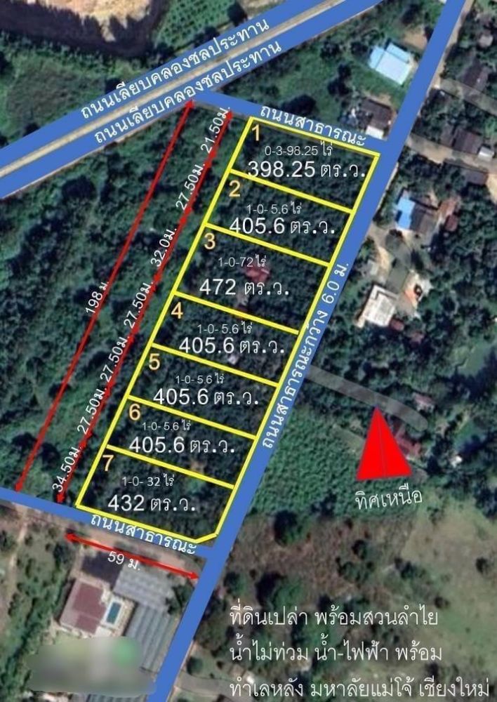 ขายแยกแปลงละ 1ไร่ ราคา 2,200,000.-บาท (5,500.-บาท/ตร.ว.) รวมค่าโอน