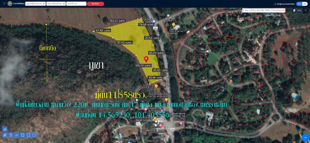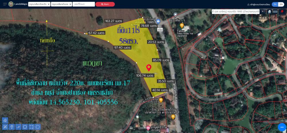 ขายที่ดิน11ไร่58ตรว. เขาใหญ่ พื้นที่สีเขียว ถนนธนะรัตน์ กม.17 หน้ากว้าง