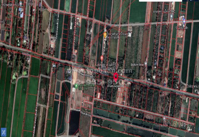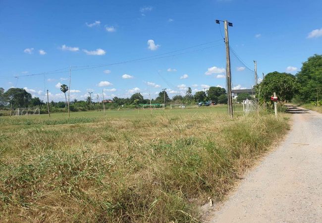 – ที่ดิน เนื้อที่ 2-3-97 ไร่ หน้ากว้าง 42.5 x 113 เมตร ถมแล้ว เสมอกับถนน