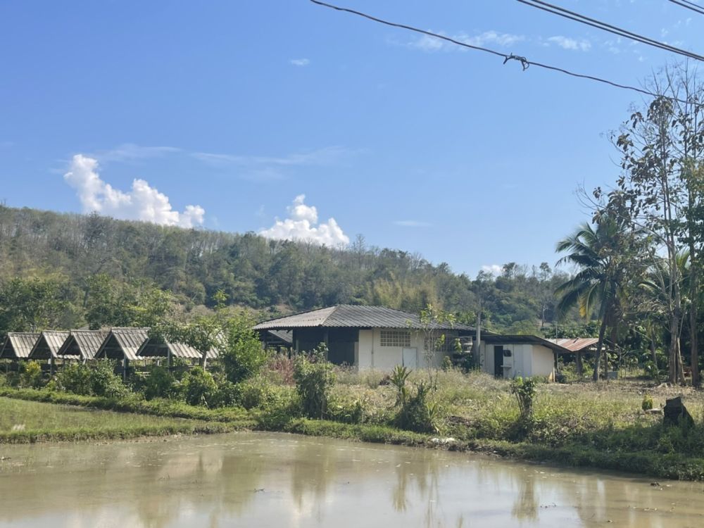 วิวสวยมาก ติดถนนสาธารณะ ไฟฟ้า เป็นบ้านไม่สักทั้งหลัง 1 หลัง มีบ่อปลาขนาดใหญ่+ซุ้มอาหาร