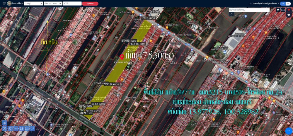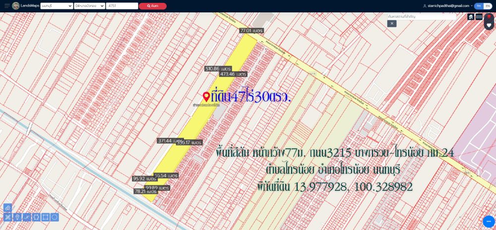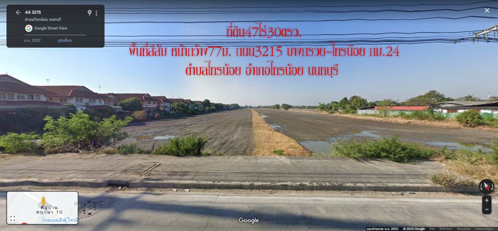 ขายที่ดิน47ไร่30ตรว. พื้นที่สีส้ม หน้ากว้าง 77ม. ถนน3215 บางกรวย-ไทรน้อย กม.24 ตำบล ไทรน้อย อำเภอไทรน้อย นนทบุรี