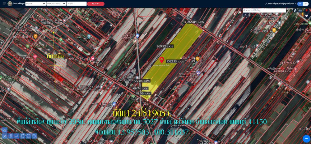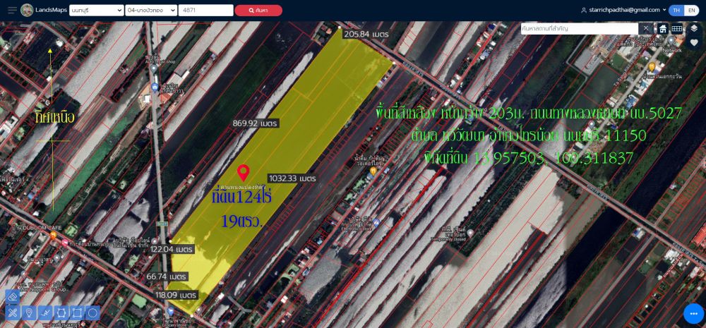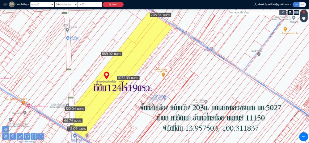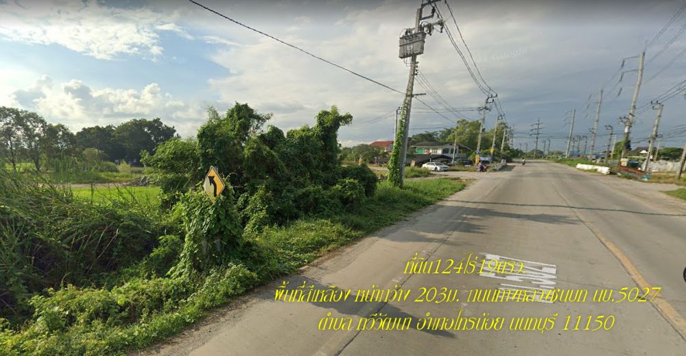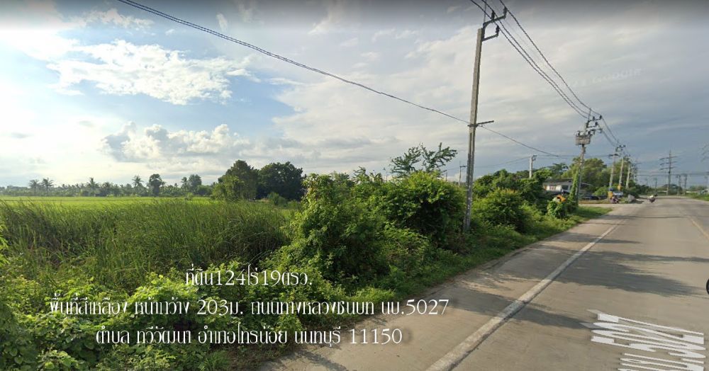 ขายที่ดิน124ไร่ ถนนทางหลวงชนบท นบ.5027 พื้นที่สีเหลือง หน้ากว้าง 203ม. ตำบล ทวีวัฒนา อำเภอไทรน้อย นนทบุรี