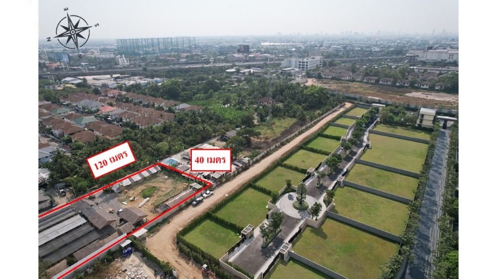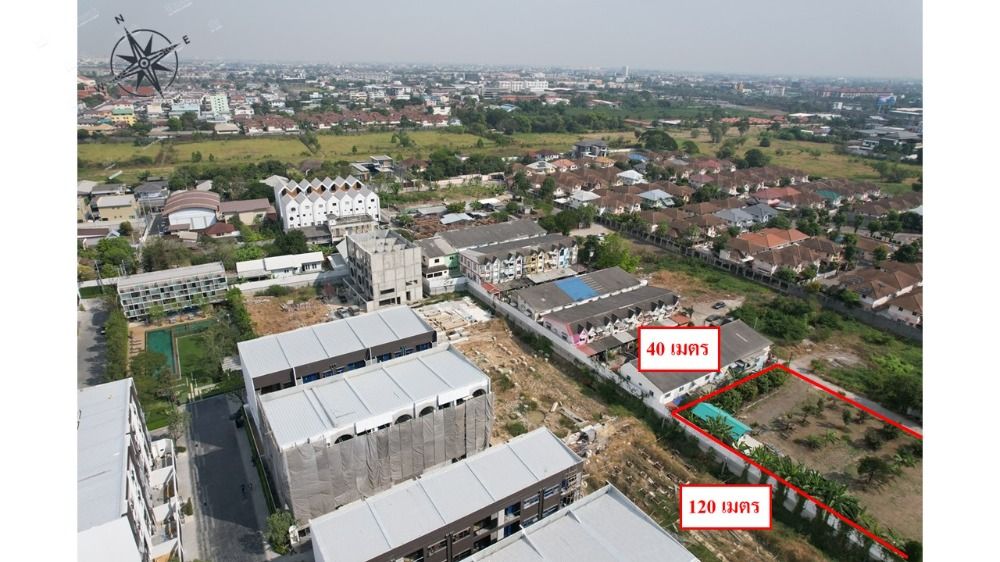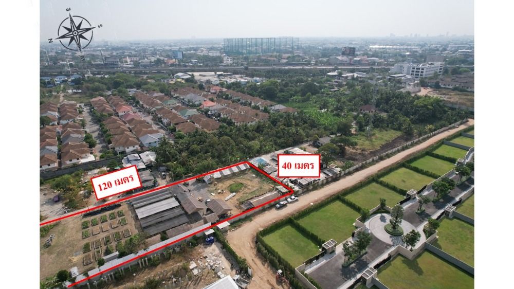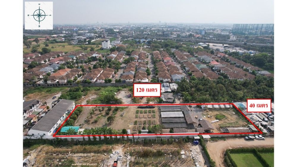 ขนาดพื้นที่ : 3 ไร่ ติดถนน กว้าง 120 เมตร ลึก 40 เมตร