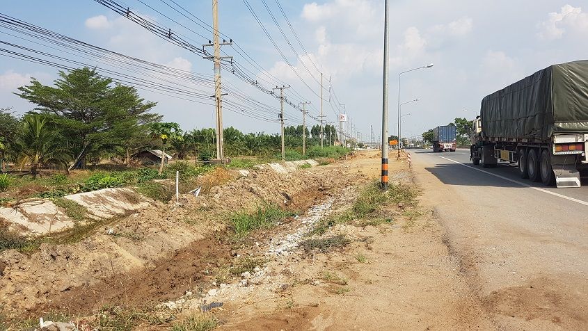 ก็ถึงที่ดินพอดีด้านซ้ายมือ จุดสังเกตุ ด้านบนที่ดินมีป้าย “ขอต้อนรับเข้าสู่จังหวัดฉะเชิงเทรา” ตรงข้ามกันเป็นตึกแถวเก่าๆ