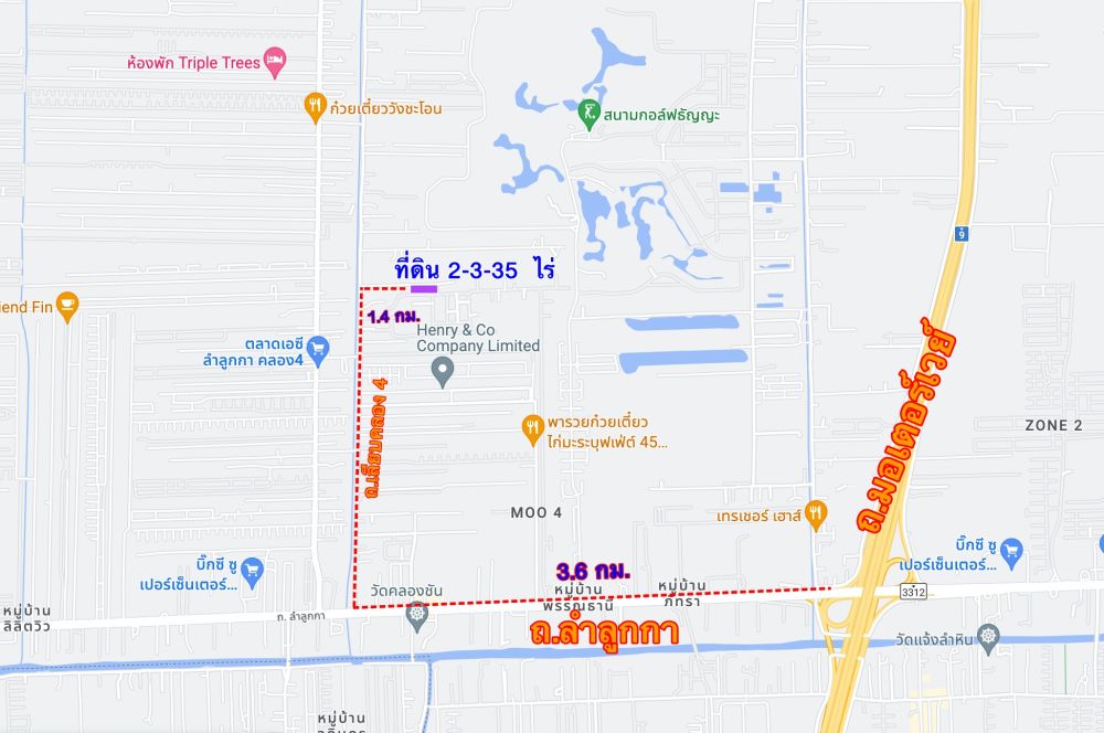 ขายที่ดิน 2 ไร่ ถ.เลียบคลองสี่ ต.ลาดสวาย อ.ลำลูกกา จ.ปทุมธานี อยู่ในพื้นที่สีม่วง สร้างโรงงานได้ มีไฟฟ้าสามเฟส เข้าจากถนนลำลูกกาเพียง 1.4 กม. เหมาะสร้างออฟฟิศ และปลูกบ้าน ห่างจากถนนมอเตอร์เวย์สายเก้าระยะทางประมาณ 3.6 กิโลเมตร ห่างจากถนนรังสิตนครนายก ประมาณ 6.2 กิโลเมตร
