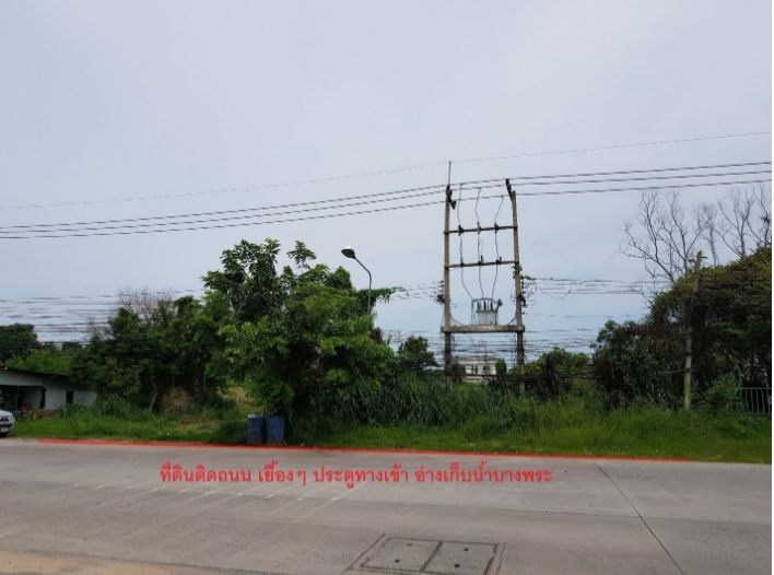 ขายที่ดินเปล่าติดถนน ตรงข้ามทางประตูทางเข้าอ่างเก็บน้ำบางพระ(นายหน้าติดเจ้าของ)