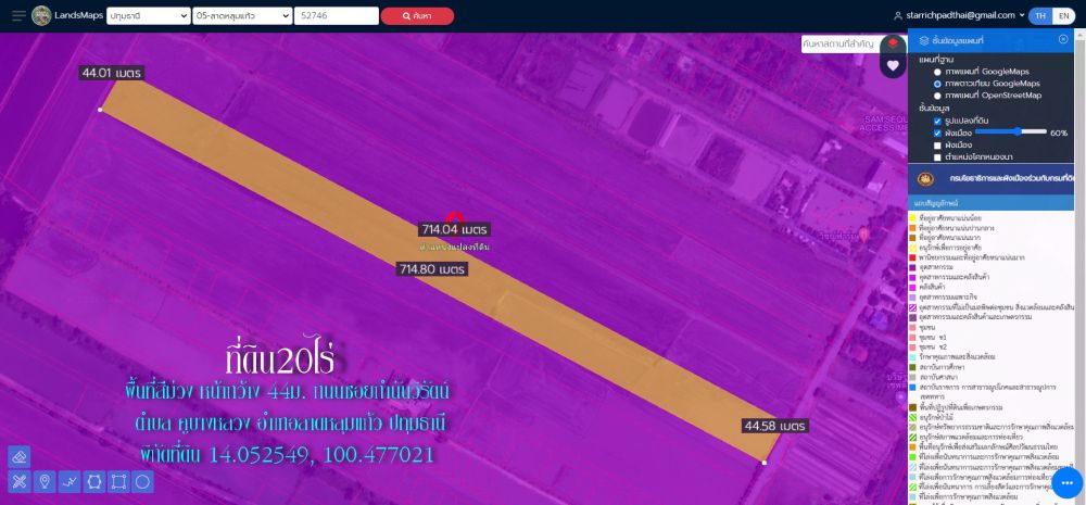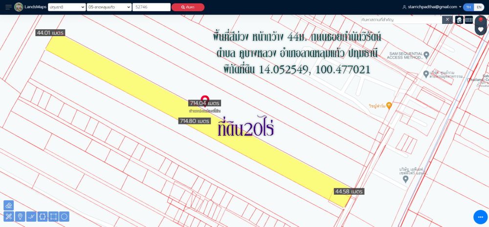 ขายที่ดิน20ไร่ หน้ากว้าง44ม.พื้นที่สีม่วงเข้ม ติดถนนซอยกำนันวิรัตน์ ตำบล คูบางหลวง อำเภอลาดหลุมแก้ว ปทุมธานี