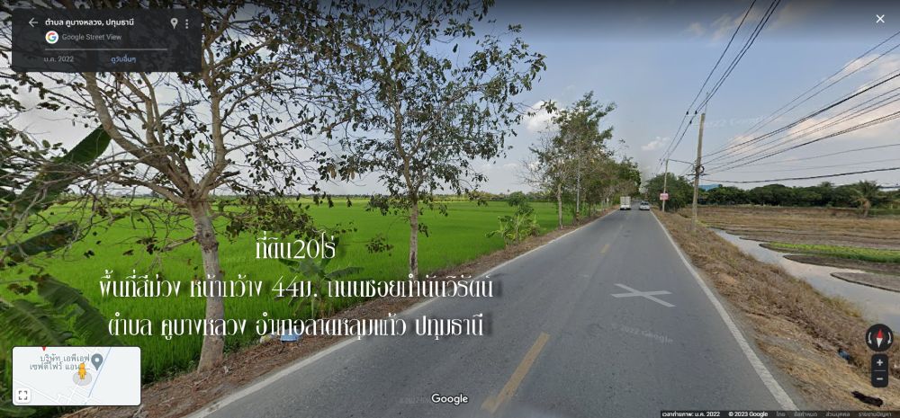 ที่ดินคูบางหลวง ลาดหลุมเเก้ว ปทุมธานี 5ไร่ 2งาน ไร่ละ 5.5 ล้านบาท รวม 30,250,000.- บาท