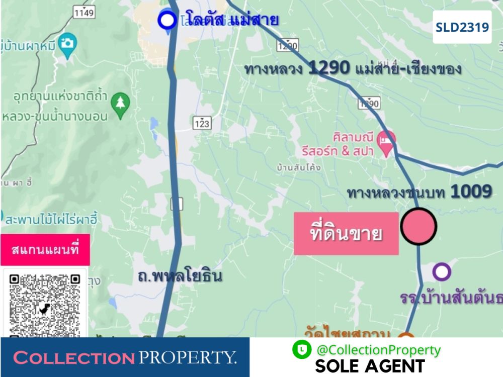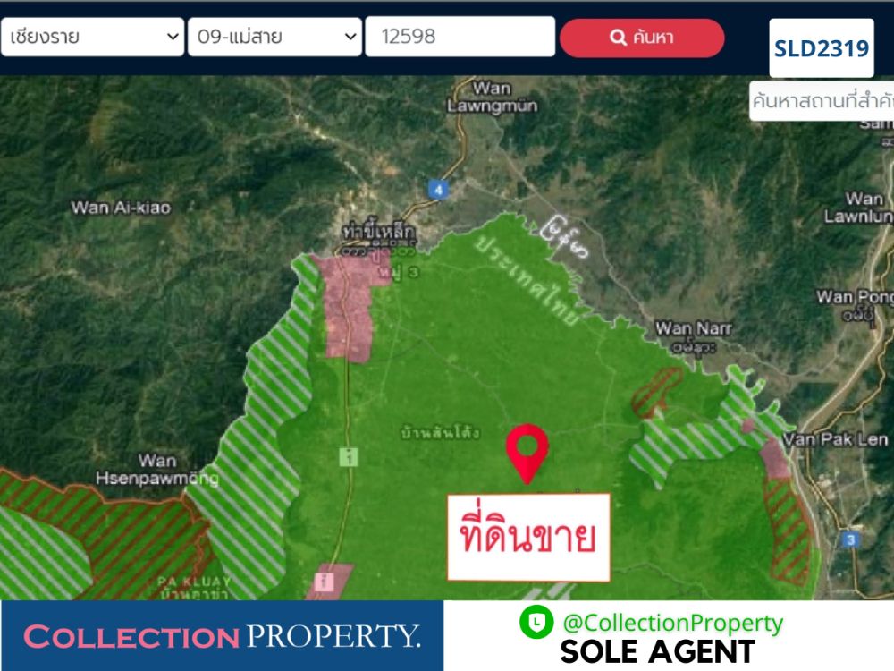 ▪️ที่ดินอยู่บนทางหลวงชนบท 1009 (แม่สาย-สันต้นธง-เชียงแสน) ต.บ้านด้าย อ.แม่สาย อยู่ในแหล่งชุมชนบ้านสันต้นธง ห่างจากวัดไชยสถาน 2 กม, อบต.บ้านด้าย 9 กม, เข้าตัวเมืองแม่สายเพียง 15 กม.