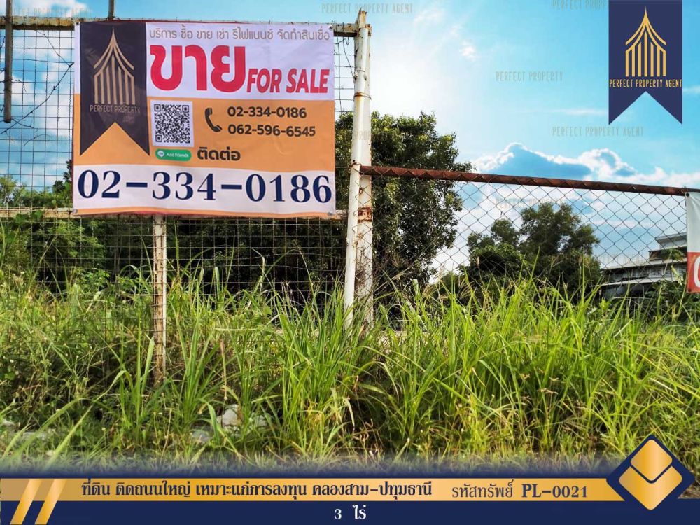 ที่ดิน ติดถนนใหญ่ เหมาะแก่การลงทุน คลองสาม-ปทุมธานี