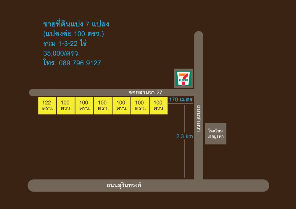 ขายที่ดินถมแล้ว ซอยสามวา 27 เนื้อที่ รวม 1-3-22 ไร่ 35,000 /ตรว.