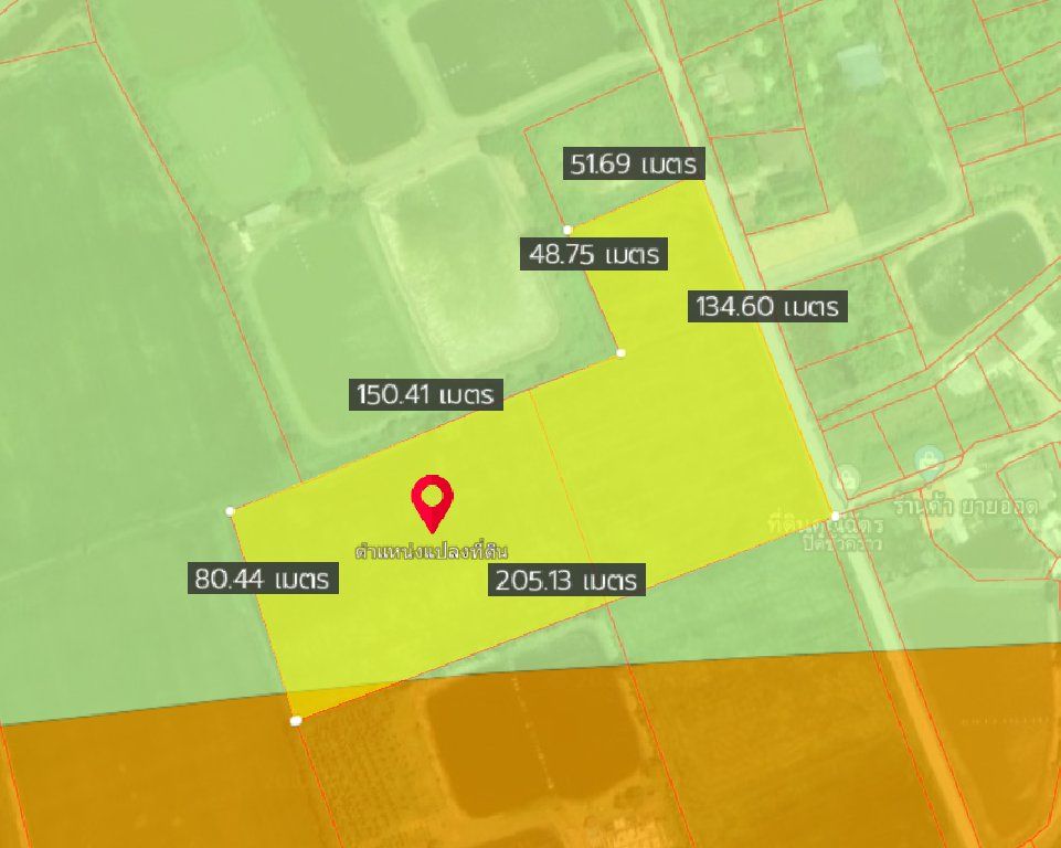 หน้ากว้างติดถนนคอนกรีต 134 เมตร X ยาว 205 เมตร