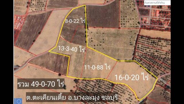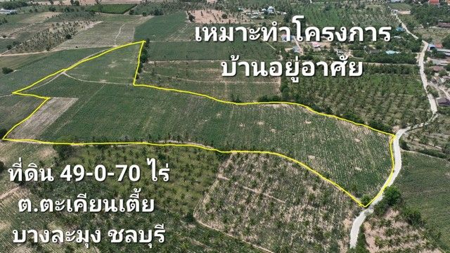 ที่ดิน 49-0-70 ไร่ ต.ตะเคียนเตี้ย บางละมุง ชลบุรี ใกล้เทศบาลตะเคียนเตี้ย 1.9 กม. เหมาะทำโครงการบ้านอยู่อาศัย ขาย 2 ล้านบาท/ ไร่