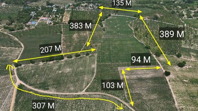 - ความกว้างด้านหลังติดถนน( ปัจจุบันเป็นถนนดิน) ประมาณ 307 เมตร