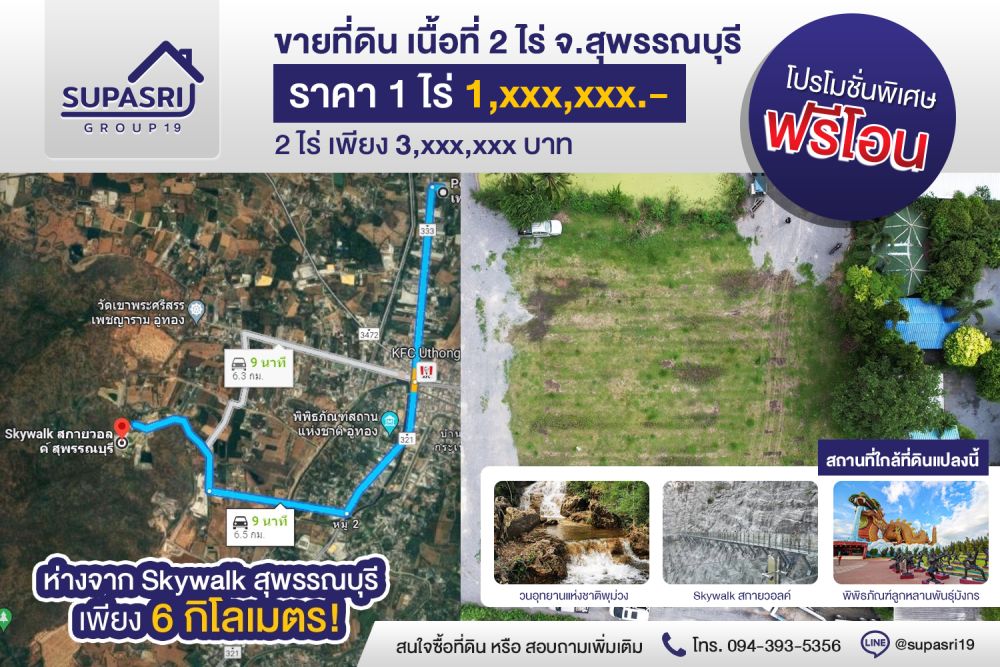 ขายที่ดินอู่ทอง 2 ไร่ อยู่ติดถนนมาลัยแมน 100 เมตร ใกล้ Skywalk เหมาะแก่การลงทุน