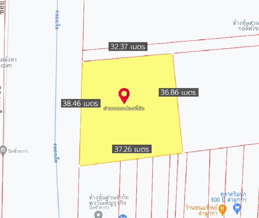 หน้ากว้างติดคลอง 38 เมตร X ยาว 37 เมตร