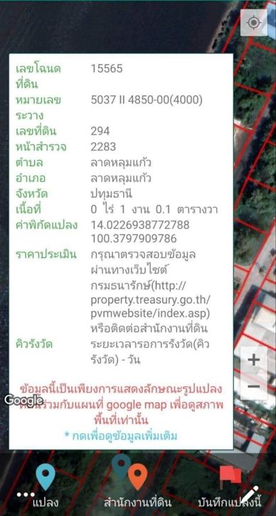 ที่ดินอยู่ที่ ตำบลลาดหลุมแก้ว อำเภอลาดหลุมแก้ว จังหวัดปทุมธานี