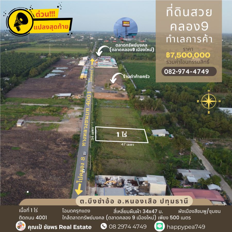 แล้วทำไมคุณถึงไม่ลงทุนในที่ดินที่คลอง 9 หนองเสือ ปทุมธานี บนถนน หมายเลข 4001 ใกล้ตลาดทรัพย์มงคล (ตลาดคลอง9 เมืองใหม่)