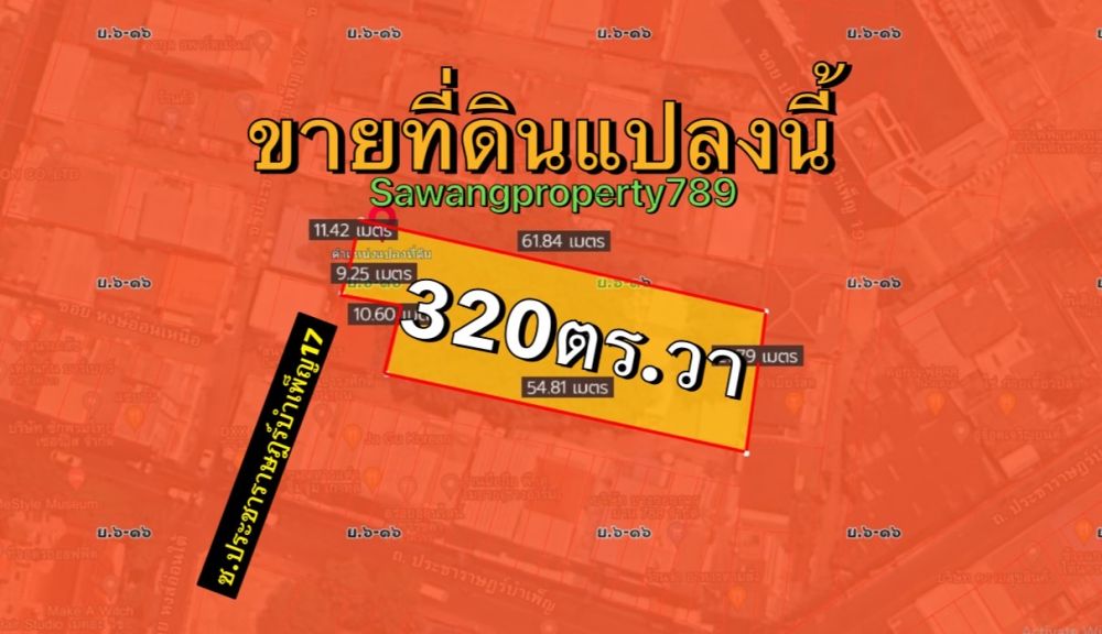 #ขายที่ดิน320ตทรางวา ซอยประราษฎร์บำเพ็ญ17