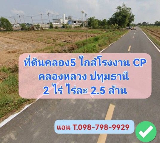 ที่ดินคลอง5 คลองหลวง ปทุมธานี 2 ไร่ ไร่ล่ะ 2.5 ล้านบาท ใกล้โรงงานCP ใกล้มอเตอร์เวย์